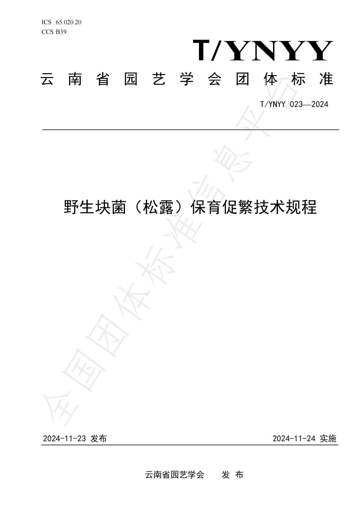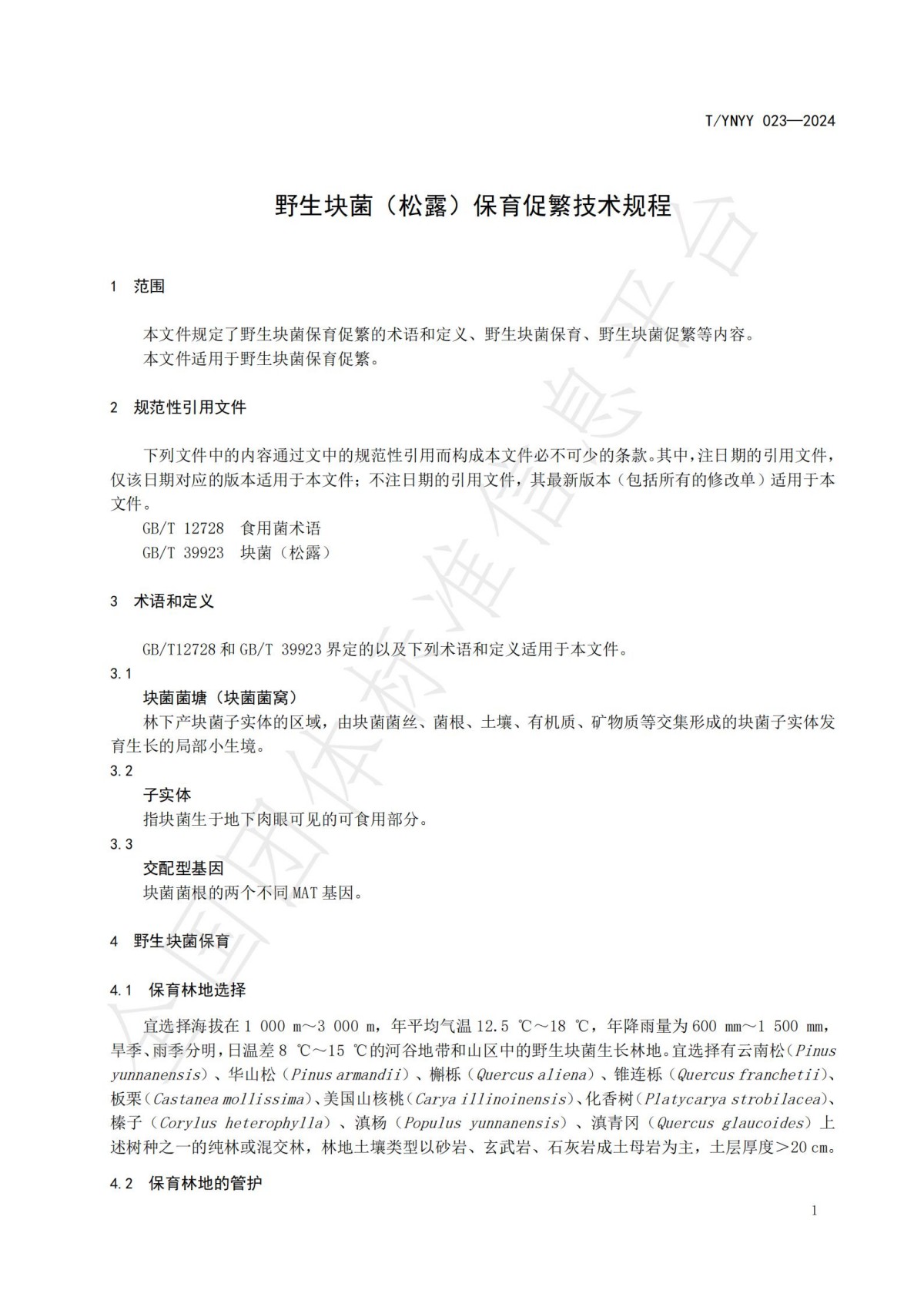 《野生块菌(松露)保育促繁技术规程》